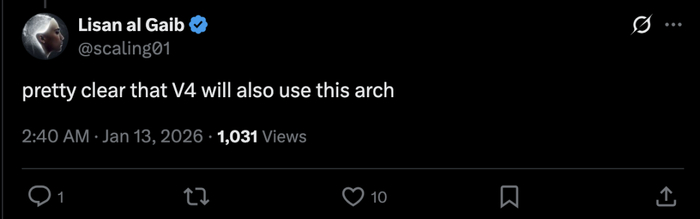 在 X 平台,也有网友表达了同样的猜测,认为 V4 也将采用这种架构。