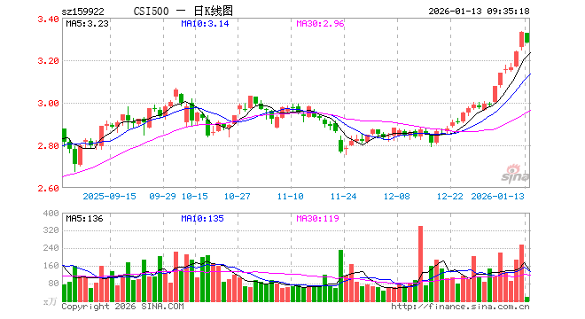 1月13日,中证500ETF(159922)开盘跌0.09%,报3.327元。中证500ETF(159922)重仓股方面,胜宏科技开盘跌1.38%,华工科技涨0.77%,先导智能涨0.44%,芯原股份涨0.23%,巨人网络涨1.19%,指南针涨1.47%,卧龙电驱跌0.08%,欣旺达跌0.16%,赤峰黄金涨0.06%,通富微电跌0.14%。
