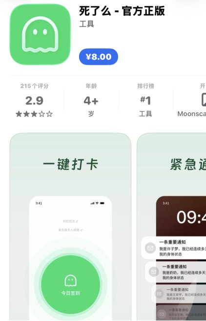 据报道,“死了么”于2025年年中上线,初期免费且无营销推广,2025年底转为1元付费下载,2026年1月因独特名称在社交媒体发酵后,下载量暴涨,定价也调整为8元。