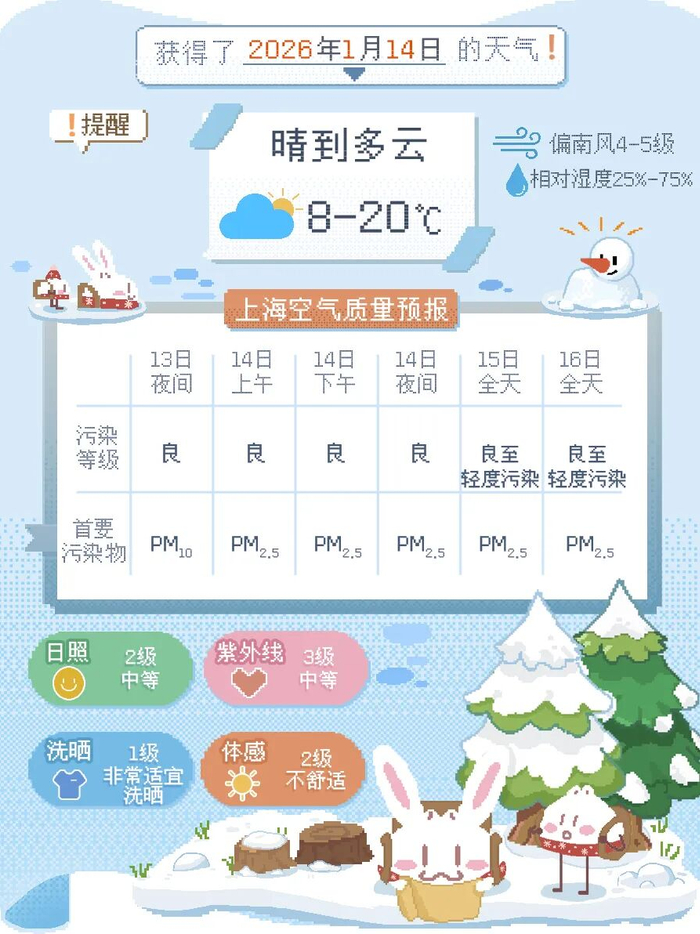 本周上海仍处在干燥少雨的天气模式中,大家坚持补水保湿外,也要格外留意用火用电安全。