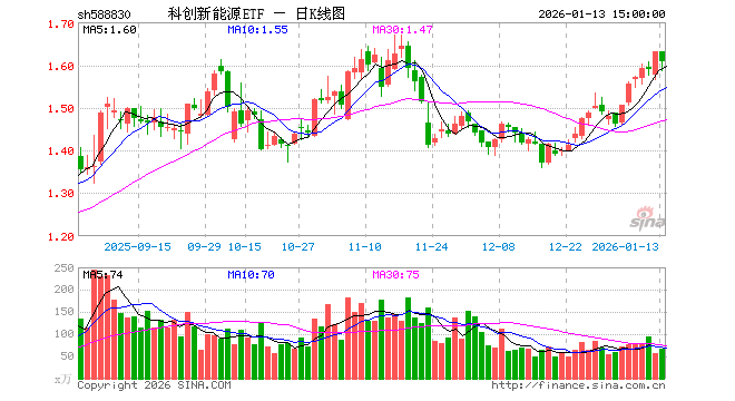 1月13日科创新能源ETF(588830)份额减少400.00万份,最新份额7.45亿份,最新规模11.99亿元