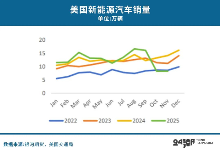 事实上,随着新能源乘用车因部分省市以旧换新补贴额度用尽,10月开始已呈现疲态,12 月冲量效果不明显,依靠商用车的大幅增长,才能保全新能源汽车整体增速。因补贴全面退坡,银河期货预计2026年中国新能源乘用车销量增速达到16%至1780万辆。