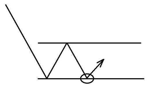 2、当一个股票在下跌趋势中,完成一次的震荡之后,拒绝新低的出现,并再次向上(而被突破)时,此时意味着空头力量衰减,市场暂时均衡,但此时并不需要急于买入,以防震荡后继续重归下跌趋势