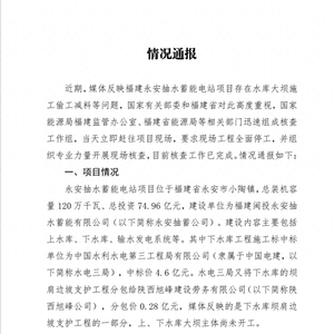 福建永安抽水蓄能电站项目被指偷工减料,官方通报
