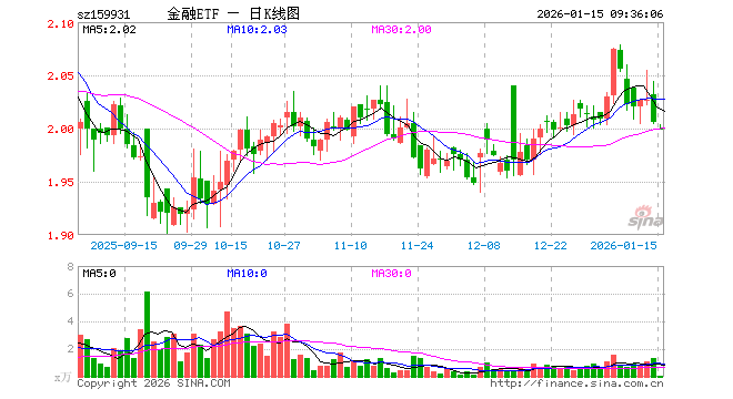 1月15日,金融ETF(159931)开盘跌0.30%,报2.000元。金融ETF(159931)重仓股方面,中国平安开盘跌0.15%,招商银行涨0.10%,东方财富跌2.06%,兴业银行涨0.00%,中信证券涨0.53%,工商银行跌0.13%,农业银行跌0.53%,国泰海通跌0.48%,交通银行跌0.14%,江苏银行涨0.20%。