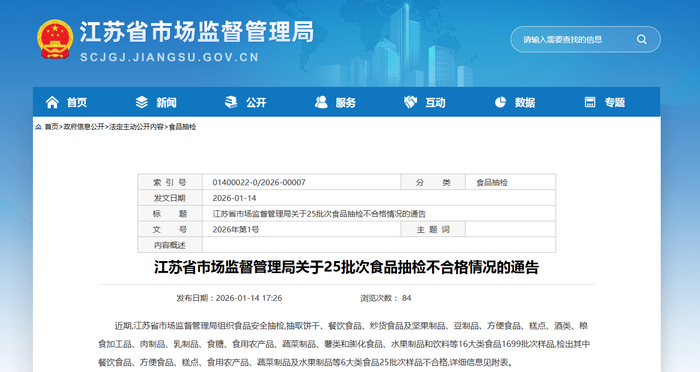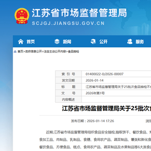 江苏省市场监督管理局关于25批次食品抽检不合格情况的通告