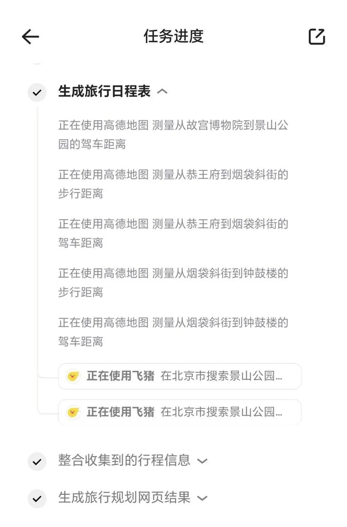 完成以上5步,总共耗时4分钟,运行了91行代码,查阅了196个网页,充分调用阿里旗下高德和飞猪的能力。
