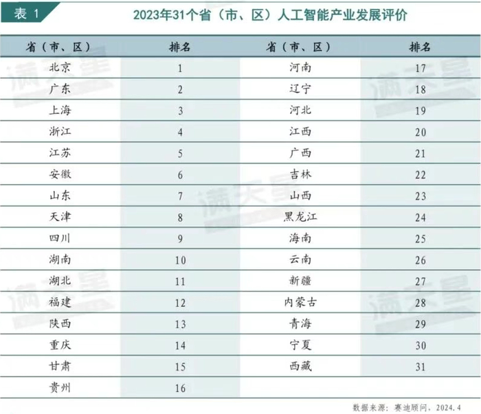 而与深圳、苏州等同样瞄准智驾的城市相比,重庆短板也同样明显。比如,AI产业是智驾的技术底座,但根据赛迪顾问编制的《中国人工智能区域竞争力研究(2024)》报告,2023年重庆人工智能区域产业整体竞争力仅居于全国各省第14位,落后于安徽、四川等中西部省份。