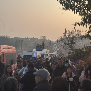 1月12日16时许,极目新闻记者在现场看到,车流已经延伸到了五六公里外。在国道与乡道的交叉口,有多名交警在执勤,他们建议车辆停在国道上,步行进入村里,不少网友选择步行或乘坐摩托车进村。三家通信运营商将应急通信车开到了现场,即便如此,因人流太多,网络信号依旧不稳定。