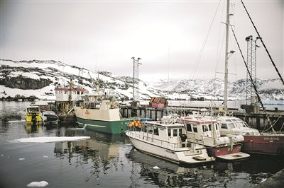 2025年3月22日在格陵兰岛纳尔萨克拍摄的码头。