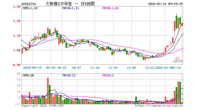 1月16日,大数据产业ETF(516700)开盘跌0.68%,报1.166元。大数据产业ETF(516700)重仓股方面,中科曙光开盘涨0.93%,科大讯飞跌2.92%,浪潮信息涨0.84%,紫光股份涨1.15%,恒生电子跌0.55%,拓维信息跌1.73%,润泽科技跌2.31%,中国长城跌0.43%,用友网络跌3.37%,深信服跌5.30%。