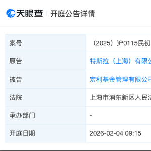 不过,“资市会”以案号((2025)沪0115民初73441号)、特斯拉、宏利基金为关键词,在上海市高级人民法院的开庭公告中进行检索,未发现上述开庭公告。