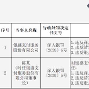 1月16日金融一线消息,中国人民银行深圳市分行行政处罚决定信息公示表显示,银盛支付服务股份有限公司因违反商户管理规定;违反清算管理规定;违反账户管理规定,被中国人民银行深圳市分行给予警告、通报批评,罚没合计人民币15,841,686.56元。