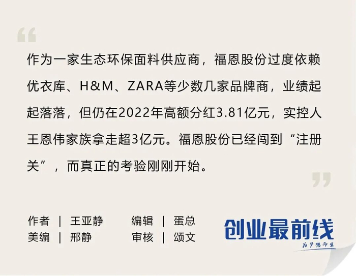 深度绑定优衣库、H&M,福恩股份闯IPO:王恩伟家族一年拿超3亿分红