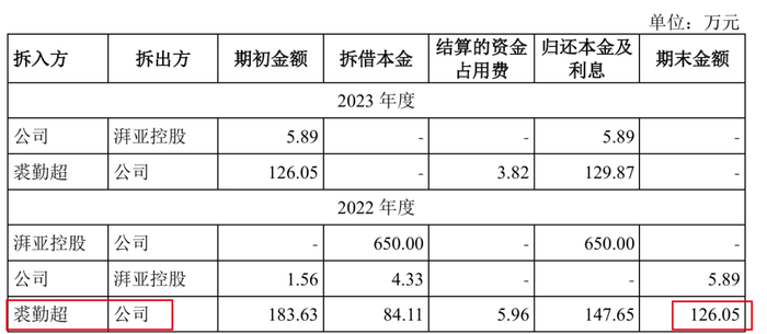 但在报告期内,裘勤超曾使用个人卡为公司收取零星货款,并被认定为公司提供的借款。于2022年末,这笔借款余额约126万元,在2023年偿还完本息。