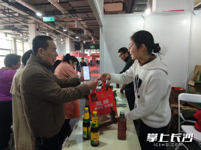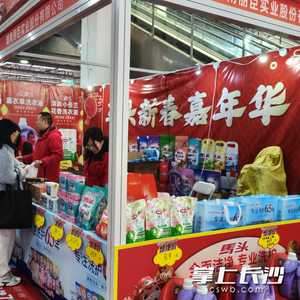 “我扫到红包了!”长沙星晰旺食品有限公司的展位上不时传来惊喜呼声。承载着无数人童年记忆的“旺旺”品牌,这次带来了丰富的年货礼包组合,从三十多元到九十多元不等,包装喜庆,价格比市场价更优惠。