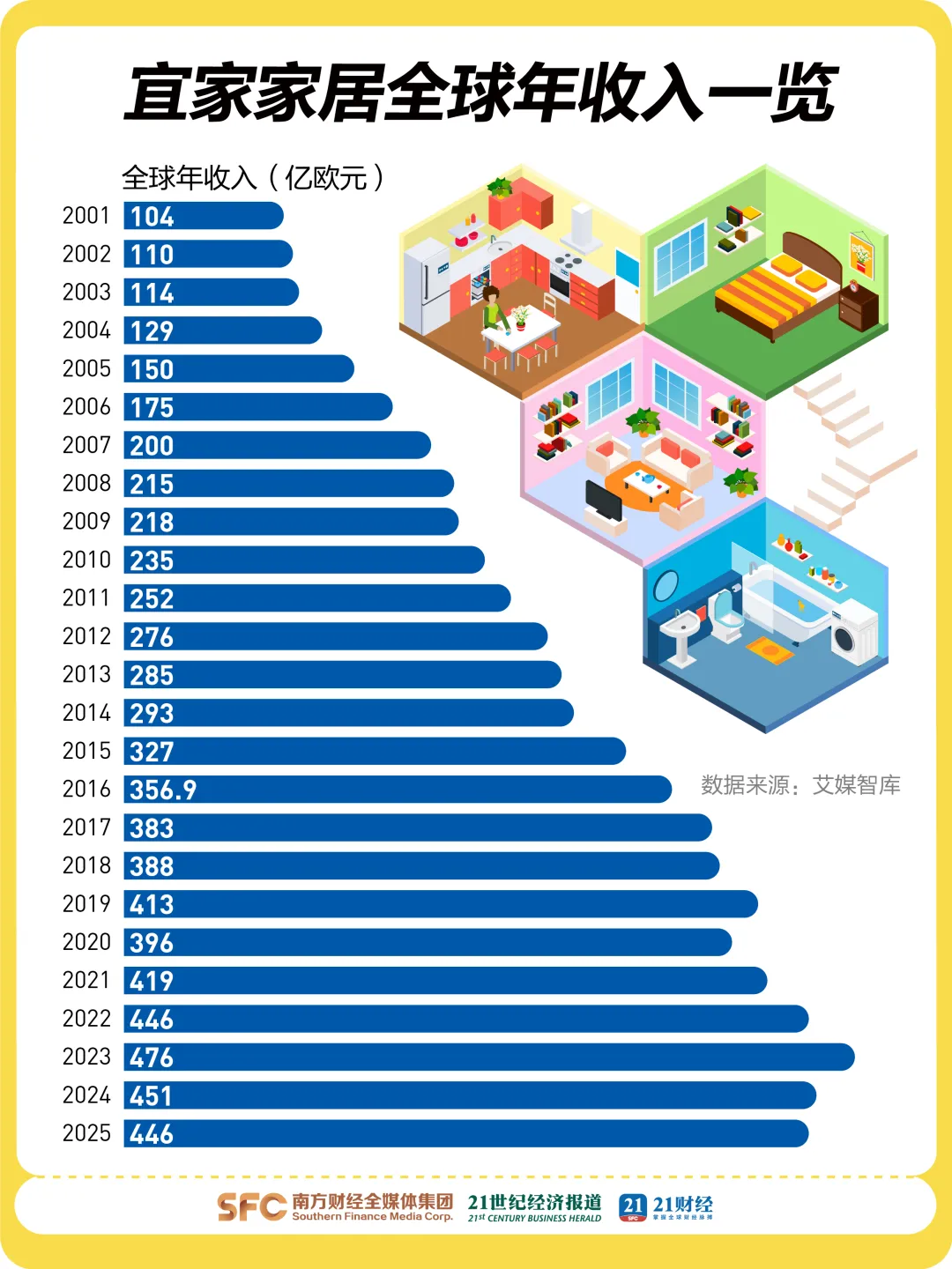 这次调整的背后,是直接的营收压力。2024财年,宜家中国营收111.5亿元,同比下滑7.6%。其母公司英格卡集团2024财年全球营收同比下滑5.5%,2025财年(2024.9.1—2025.8.31)营收进一步同比下降0.9%。