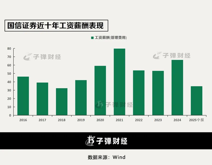 进入2025年,国信证券管理费用延续上升趋势。截至2025年上半年,国信证券管理费用46.76亿元,同比上升28.43%;其中工资薪酬为34.70亿元,同比上升36.99%。