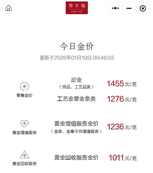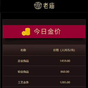 国内黄金饰品价格对比显示,多家黄金珠宝品牌公布的境内足金首饰价格大涨:老凤祥报价1456元/克;老庙黄金报价1459元/克;周生生报价1451元/克;周大福报价1455元/克。