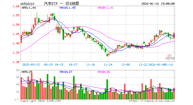 1月16日汽车ETF(516110)份额减少300.00万份,最新份额4.21亿份,最新规模6.07亿元