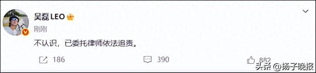 刚刚,演员吴磊微博更新微博:不认识,已委托律师依法追责。