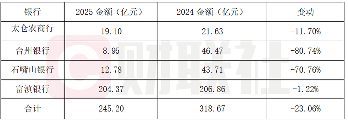 四家银行合计存续规模从2024年的318.67亿元降至2025年的245.20亿元,这一整体收缩态势,既体现了中小银行自营理财业务的压力,也契合“年底非标清零”的监管导向与中小银行转向代销的行业趋势。