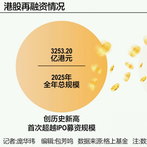 格上基金数据显示,2025年港股再融资市场迎来历史性高点,全年总规模达3253.20亿港元,不仅较2024年显著扩大,更首次超越同年港股IPO募资规模(约2857亿港元),创历史新高。
