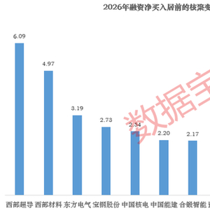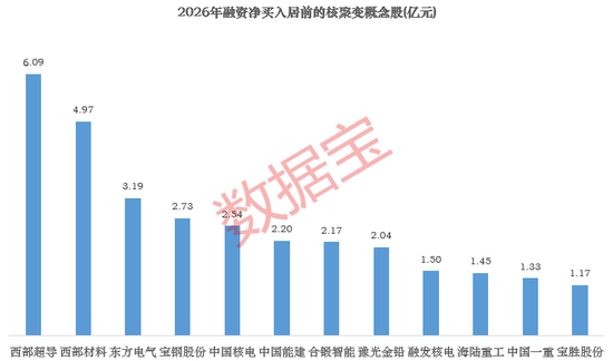 据证券时报·数据宝统计,2026年以来(截至1月16日)融资资金净买入超亿元的核聚变概念股有12只,西部超导、西部材料、东方电气排名前三,金额均超3亿元。
