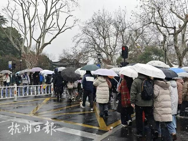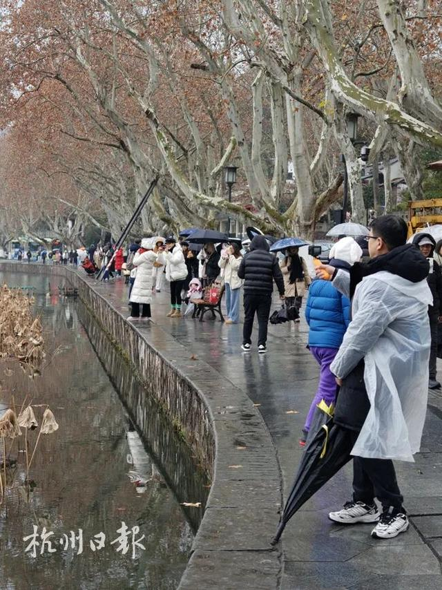 人群里,还有个从河南来的小姑娘,踮着脚打听西湖的摇橹船在哪儿。她说,都说“晴西湖不如雨西湖,雨西湖不如雪西湖”,听说今日湖面无船,她略带遗憾。