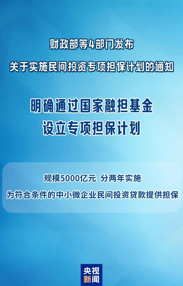 1月20日,财政部等4部门对外发布通知,明确通过国家融资担保基金设立专项担保计划,规模5000亿元,分两年实施。