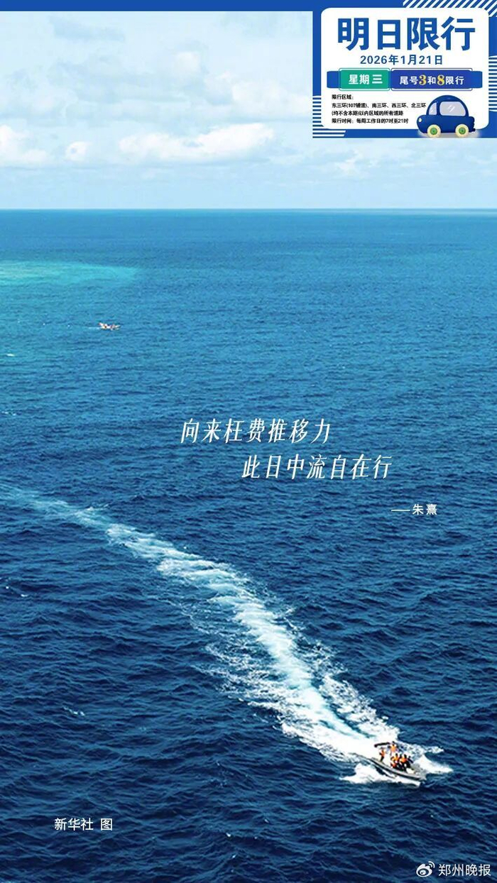 明日(7时~21时),郑州市机动车号牌最后一位阿拉伯数字为3和8的车辆限行。