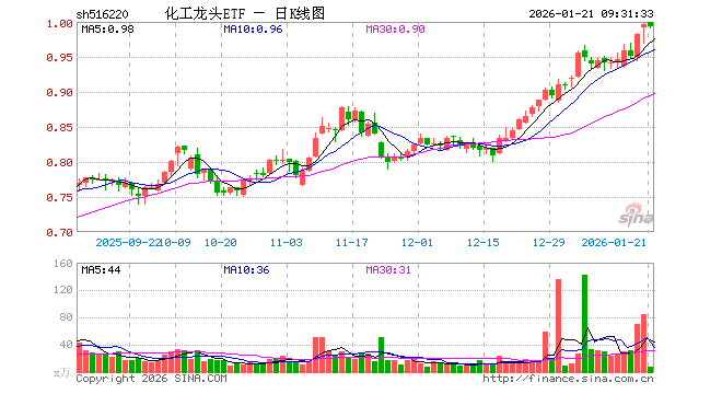 化工龙头ETF(516220)业绩比较基准为中证细分化工产业主题指数收益率,管理人为国泰基金管理有限公司,基金经理为王玉,成立(2021-03-02)以来回报为-0.61%,近一个月回报为17.48%。