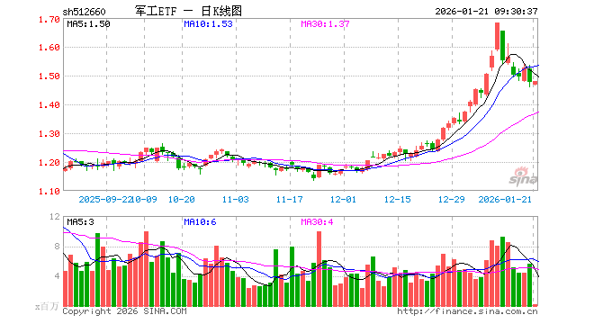 军工ETF(512660)业绩比较基准为中证军工指数收益率,管理人为国泰基金管理有限公司,基金经理为艾小军,成立(2016-07-26)以来回报为47.95%,近一个月回报为17.75%。