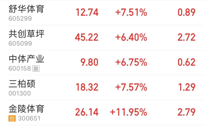 足球概念股拉升:金陵体育涨近12%,舒华体育等多股涨超7%