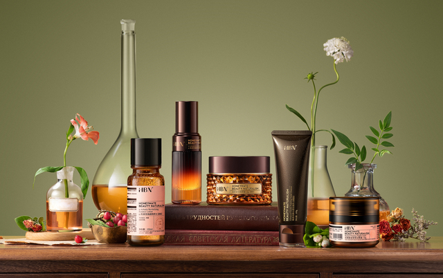 在HBN看来,功效不应止于报告数据,而应是可被真实感知、有温度的体验。为此,品牌将理性的科研语言,延伸为一套外化的“科研美学”表达体系。这种美学表达,首先凝练于产品的视觉基因之中,HBN标志性的棕色避光瓶,灵感源自实验室药剂瓶,不仅守护活性成分的稳定性,更以沉静而专业的设计语言,向用户传递出一份可靠的承诺。