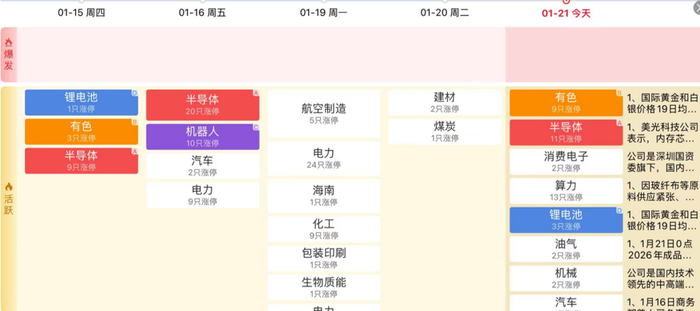 2、超短题材:题材炒作方面,盘面上逐渐走出几只聚焦的方向,贵金属方向持续涨价带动股价上涨,科技内部各细分持续走轮动,但明显的主升方向暂时不能判定,还需继续跟踪。