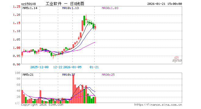 1月21日工业软件ETF(159108)份额减少800.00万份,最新份额2.11亿份,最新规模2.38亿元