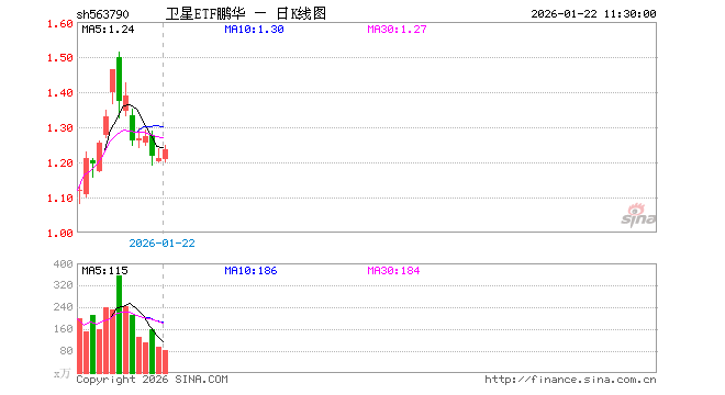 1月22日,截止午间收盘,卫星ETF鹏华(563790)涨2.15%,报1.236元,成交额9987.02万元。卫星ETF鹏华(563790)重仓股方面,中国卫星截止午盘涨3.15%,航天电子涨6.09%,臻镭科技涨3.05%,中国卫通涨5.58%,中科星图涨1.29%,华测导航涨1.27%,北斗星通涨1.82%,北方导航涨1.34%,芯原股份跌0.12%,国博电子涨1.88%。