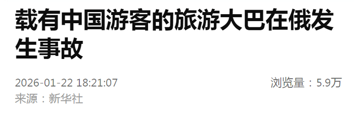 突发:载有中国游客旅游大巴在俄发生事故