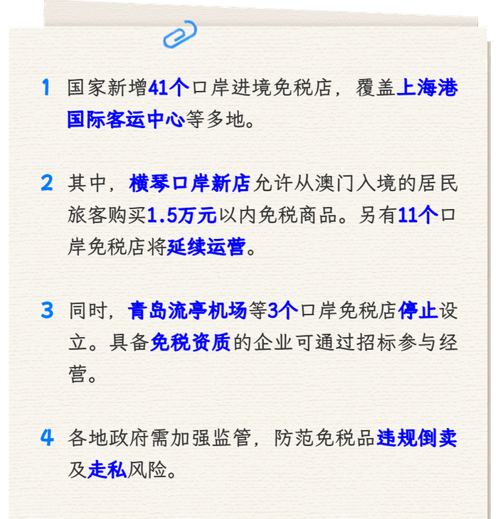 【提示】在这41个口岸新设进境免税店