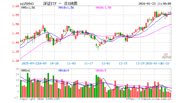 1月23日,截止午间收盘,深证成指ETF大成(159943)涨0.19%,报1.564元,成交额748.91万元。深证成指ETF大成(159943)重仓股方面,宁德时代截止午盘跌0.36%,中际旭创跌6.10%,新易盛跌6.71%,美的集团跌0.63%,东方财富涨0.17%,立讯精密跌2.04%,阳光电源涨0.29%,比亚迪跌0.49%,五粮液涨0.43%,北方华创跌0.47%。