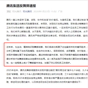 1月23日,腾讯集团发布《腾讯集团反舞弊通报》,披露2025年度反腐“成绩单”。这是腾讯连续第七年对外公开内部反腐情况。