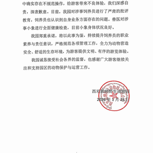 新京报讯 1月23日,西双版纳野生动物园发布关于饲养员不规范操作情况的说明,内容如下: