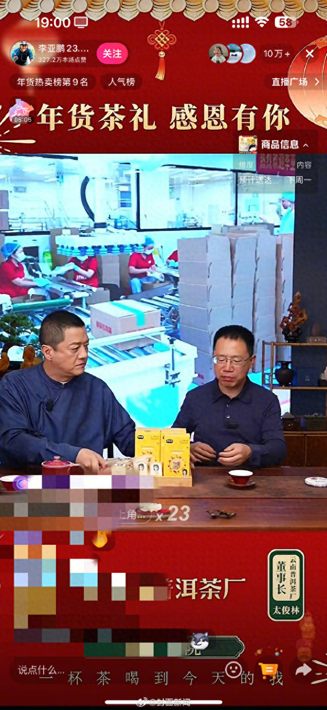 李亚鹏直播带货半小时成总榜第一,超10万人在线观看,本人呼吁直播间网友理性下单