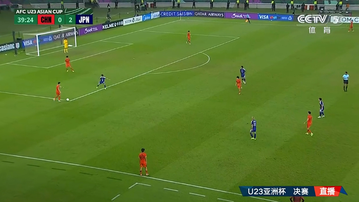 比赛第20分钟,日本队抢断得球后一脚劲射破门,中国队0比2落后日本队。