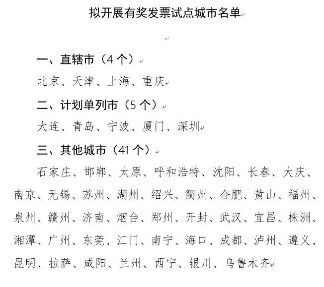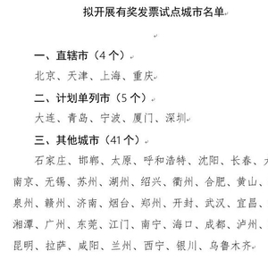 据第一财经,尽管最终上述50个城市具体有奖发票细则还有待后续公开,但根据财政部等三部门此前发布的《关于开展有奖发票试点工作的通知》(下称《通知》),这50个城市的有奖发票基本规则比较清晰。