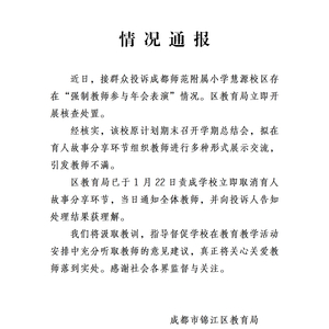 1月25日,四川省成都市锦江区教育局发布情况通报: