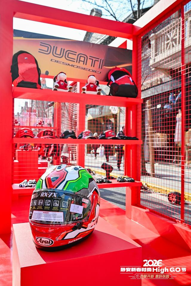 昨天,首届“2026静安新春时尚HighGO节”开幕,也拉开了静安区迎新促消费的序幕。1月24日至25日,意大利摩托车品牌杜卡迪“劲擎启新,意跃张园”IP活动在张园及茂名北路限时步行街举行,百年意式机械美学与百年石库门建筑发起了跨时空对话。