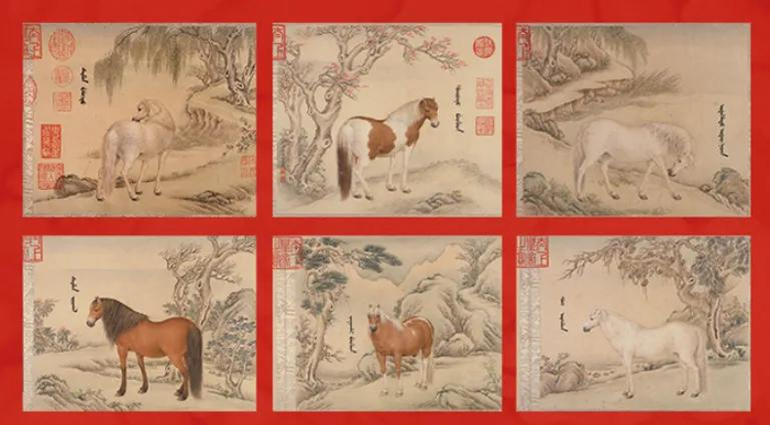 选取《十骏图册》其中的六幅,辅以祥云、蝠纹饰,设计红包,
