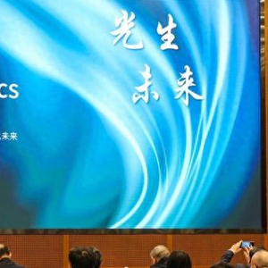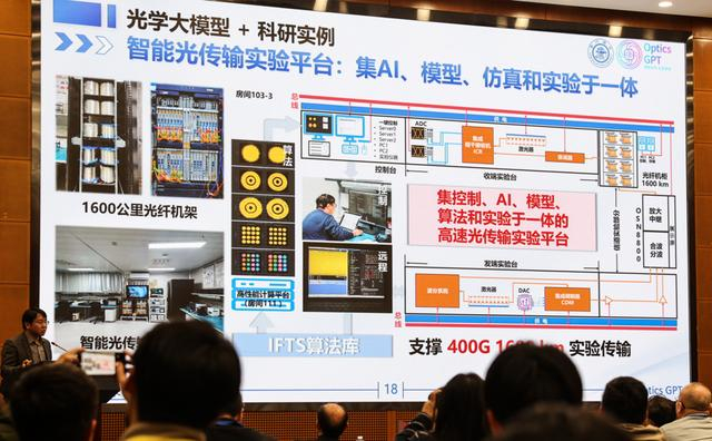 图为上海交通大学集成电路学院特聘教授、光子传输与通信全国重点实验室副主任义理林在发布现场进行演讲与演示。